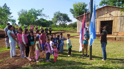En el inicio de la misma, participaron blancos y guaraníes. Los materiales están siendo comprados con lo que se recauda de las ferias americanas que se desarrollan con la ropa y el calzado que los amigos de la Biblioteca donan y que enviamos desde Pilar.
